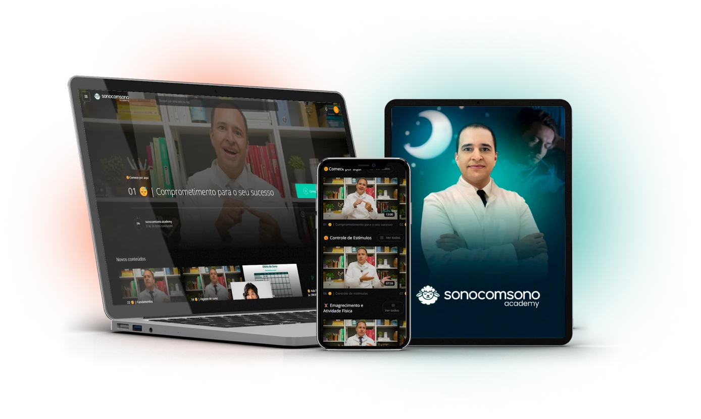 Na Sono com Sono Academy, ele aplica toda sua experiência em uma trilha de aulas única, que vão funcionar como um verdadeiro tratamento contra a insônia.